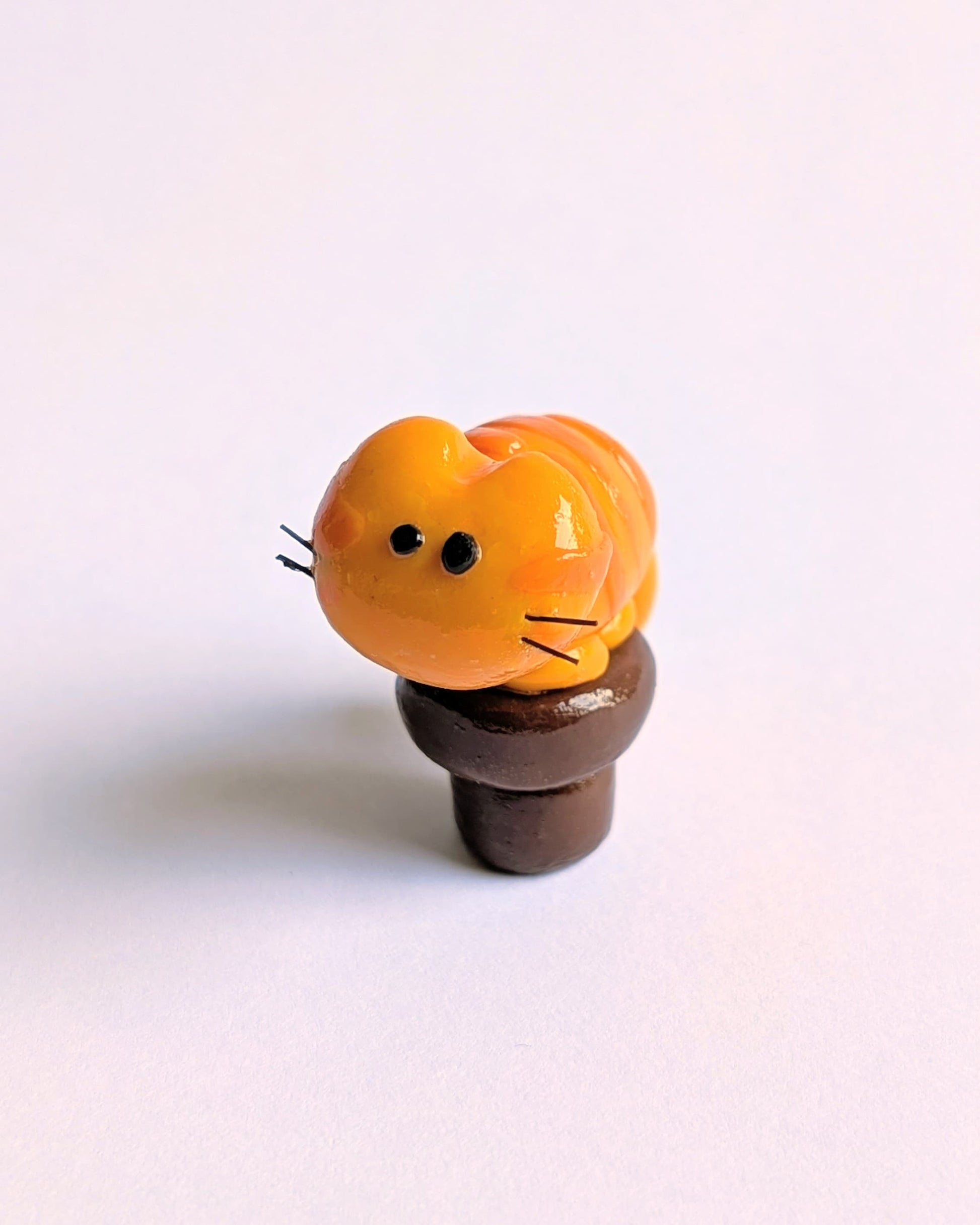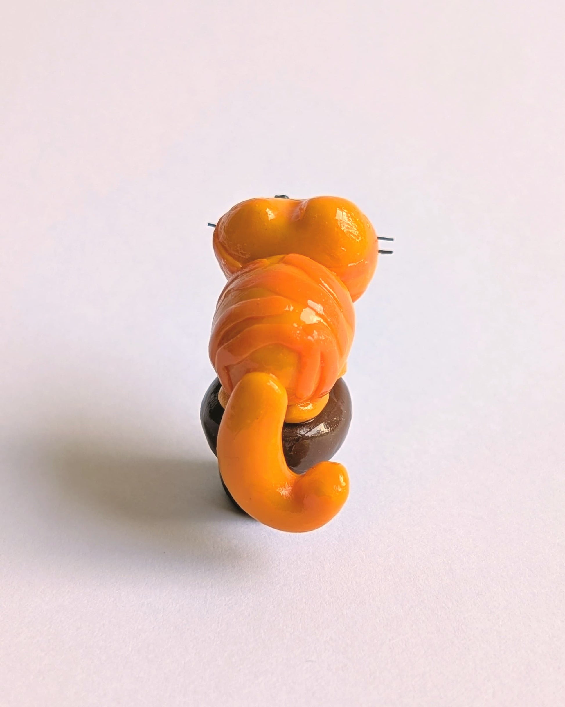 This tiny ginger cat figurine is a sweet addition to any desk, shelf, or cozy corner. Handmade with care using polymer clay and finished with a glossy resin glaze, it’s perfect for cat lovers or anyone who appreciates a little warmth in their space.