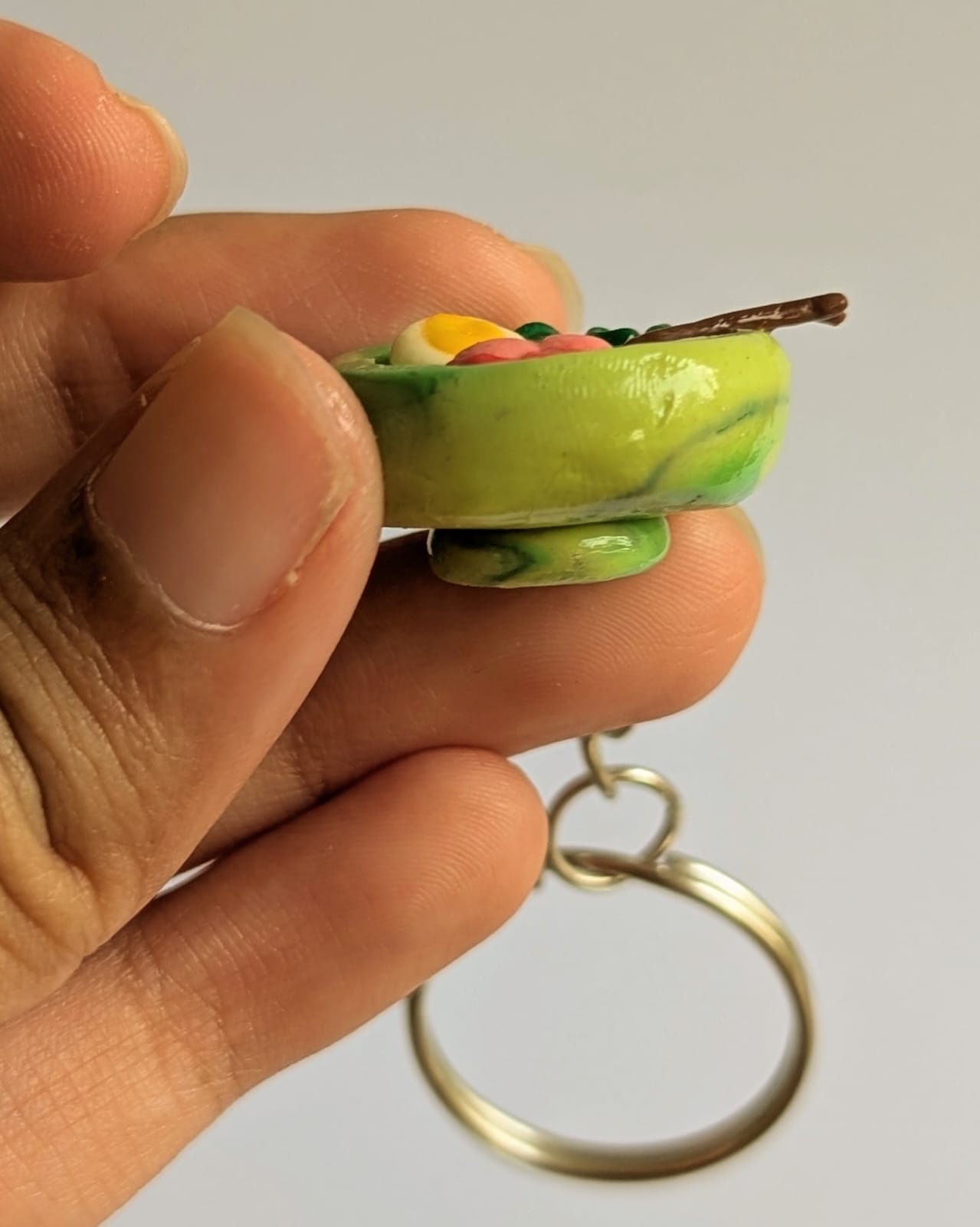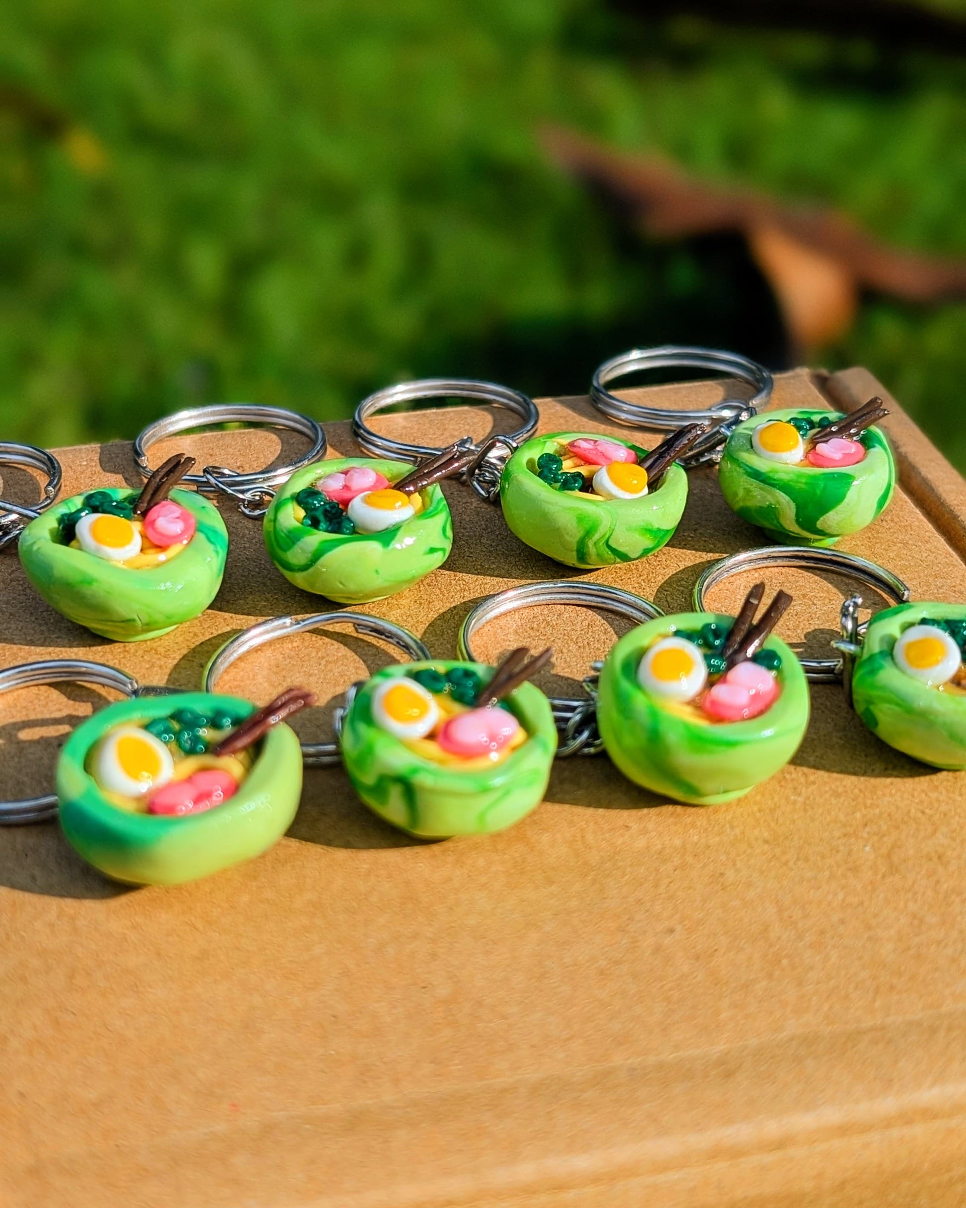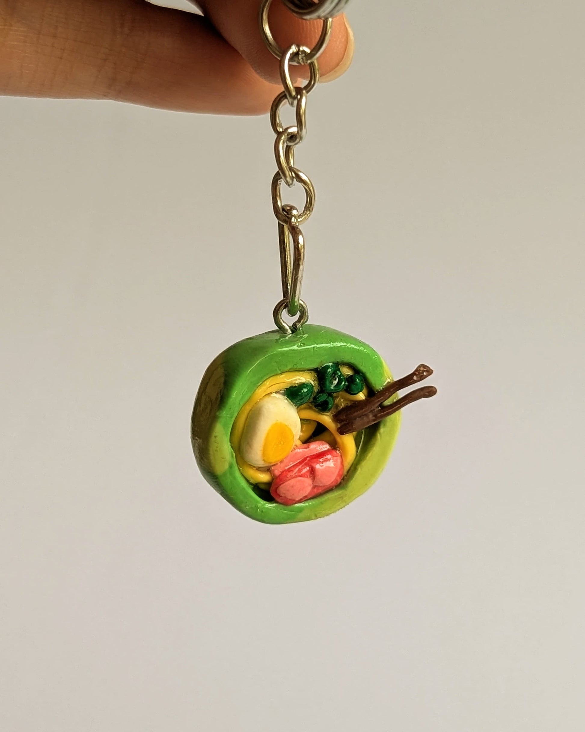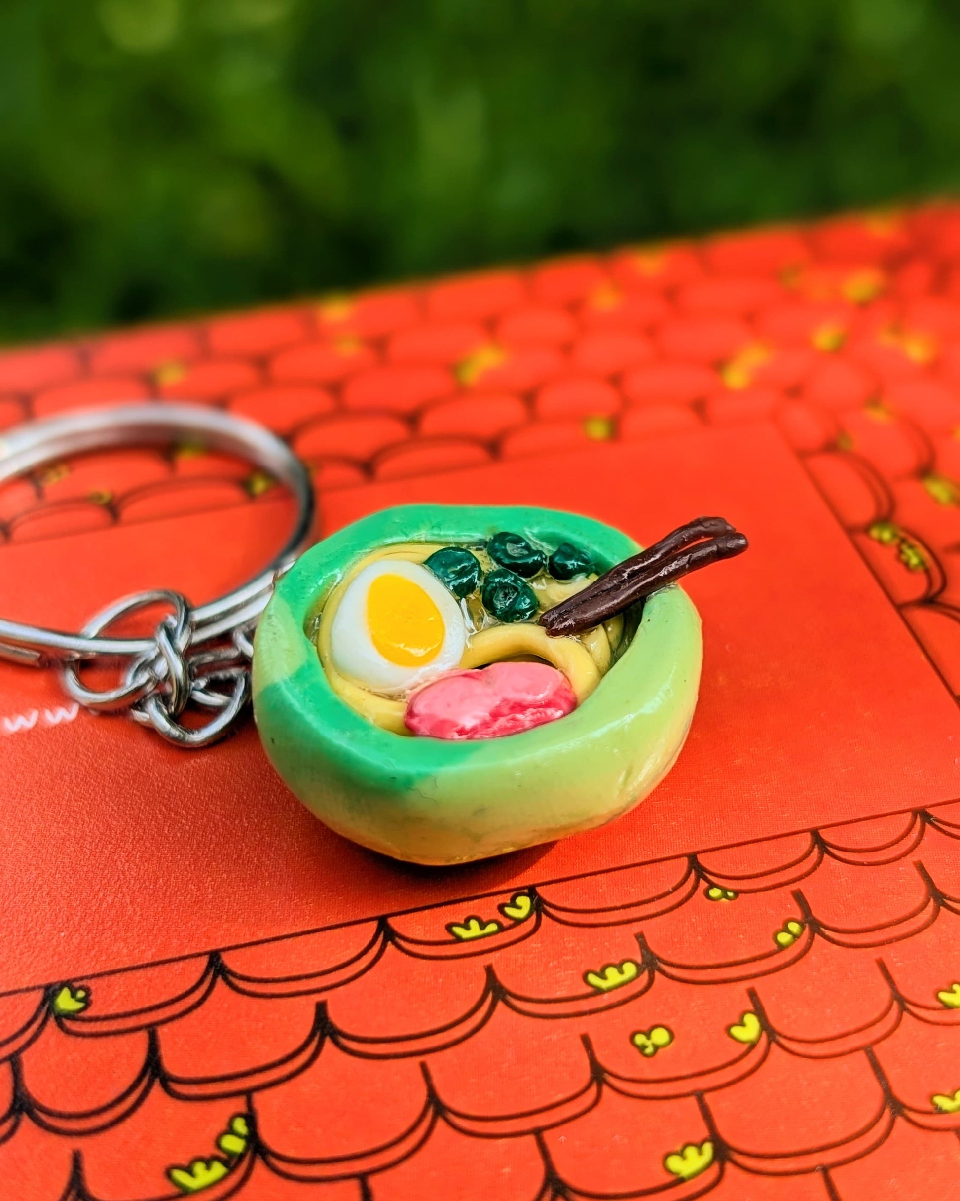 This tiny bowl of ramen is a little reminder of comfort food at its best—complete with an egg, greens, and a slice of meat, perfect for those cozy rainy days, and small enough to sit on your desk or shelf!